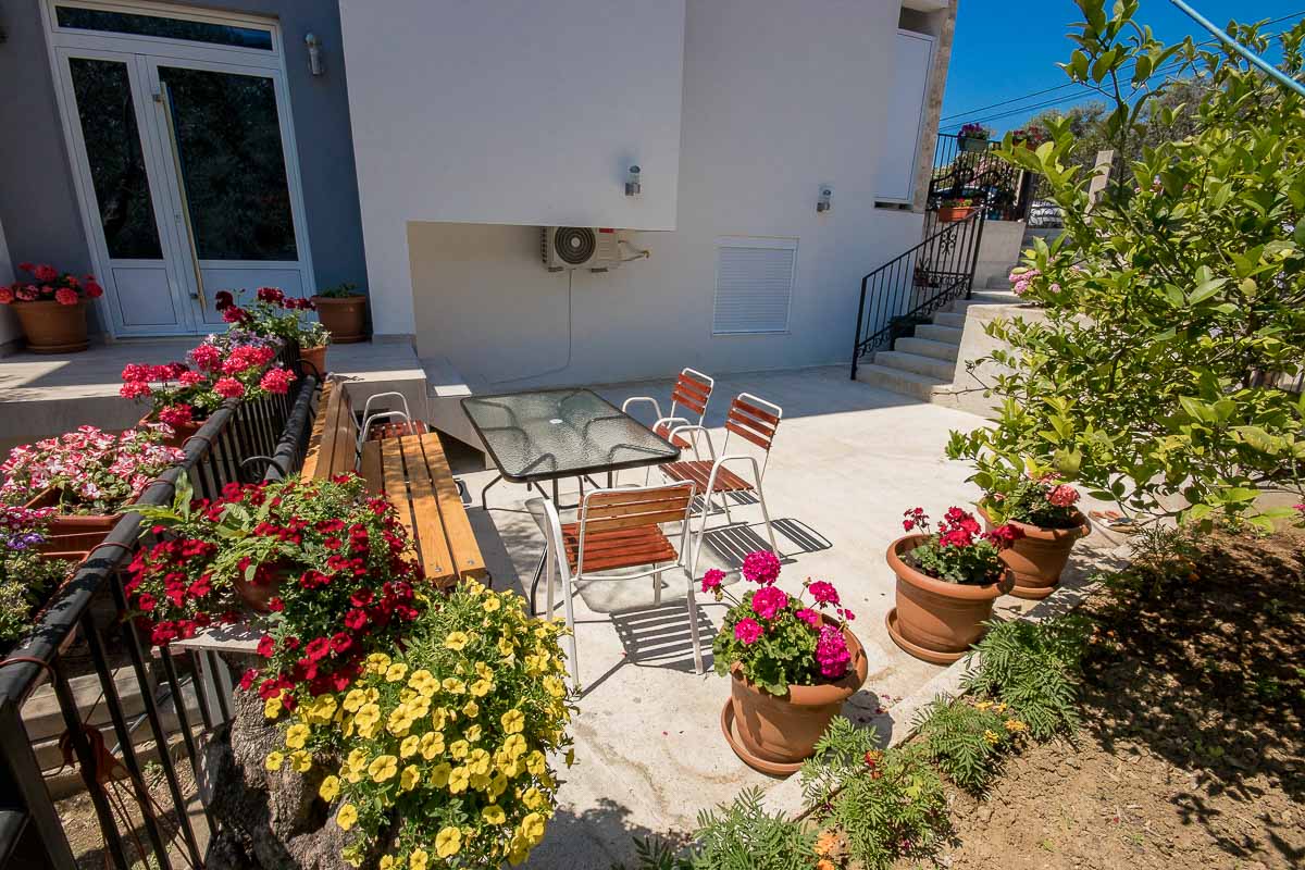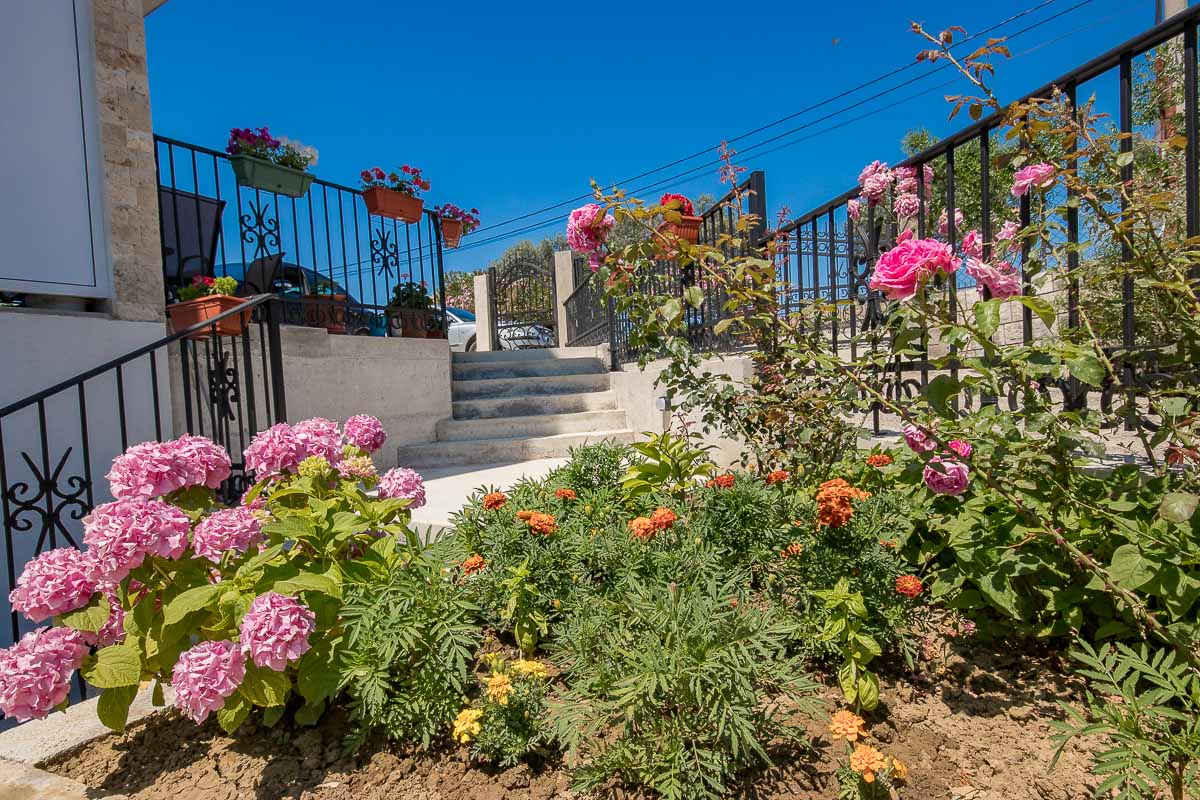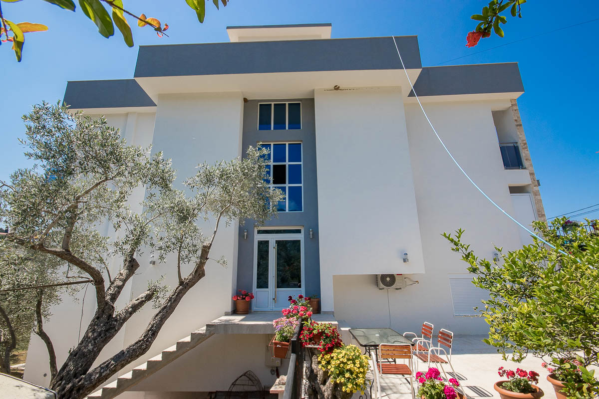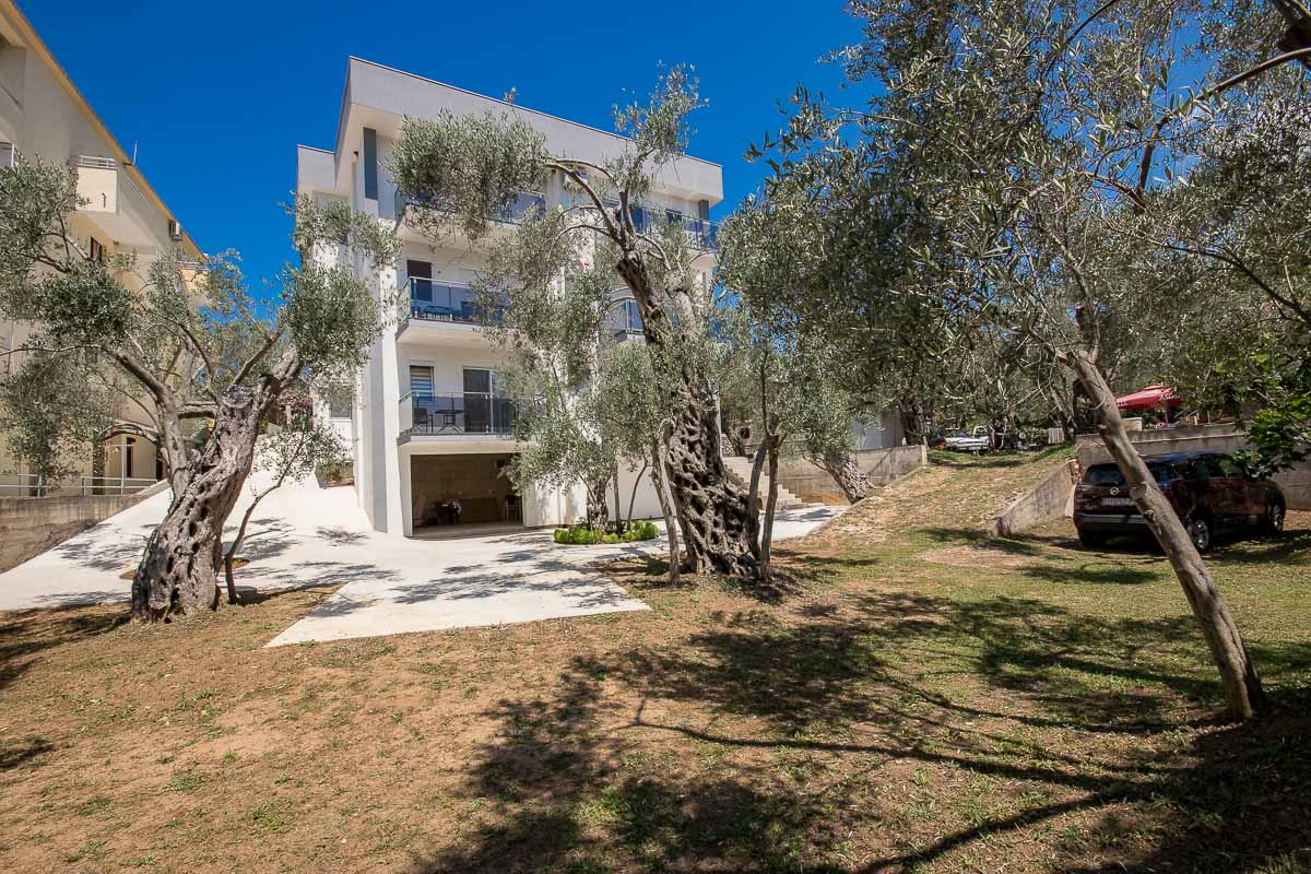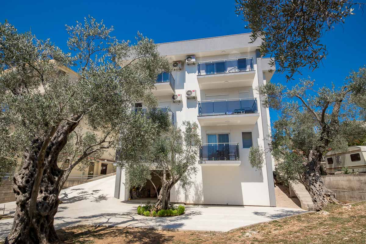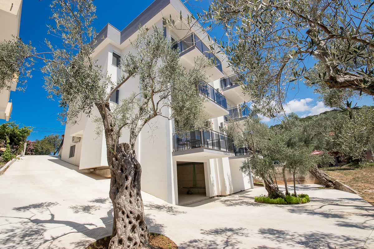 Objekat je moderne arhitekture i karakterišu ga prostrane smještajne jedinice. U ponudi imao 2 studio apartman i 9 apartmana sa odvojenom spavaćom sobom. Svi veliki apartmani imaju sopstvene terase sa djelimičnim ili potpunim pogledom na more. Svaki apartman ima klima uređaj, satelitsku televiziju, besplatan internet. Opremljeni su mini kuhinjama, modernim kupatilom kao i svim potrebnim pratećim uređajima, što će Vaš boravak učiniti da se osjećate kao kod svoje kuće. Kao jedna od prednosti boravka u našeim apartmanima jeste i to da svim našim gostima je obezbijeđen besplatan parking u hladu maslinjaka u sklopu našeg imanja.
